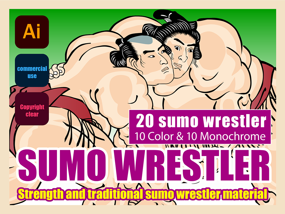 100% vector sumo wrestler assets to add strength and traditional sophistication to apparel and packaging designs.